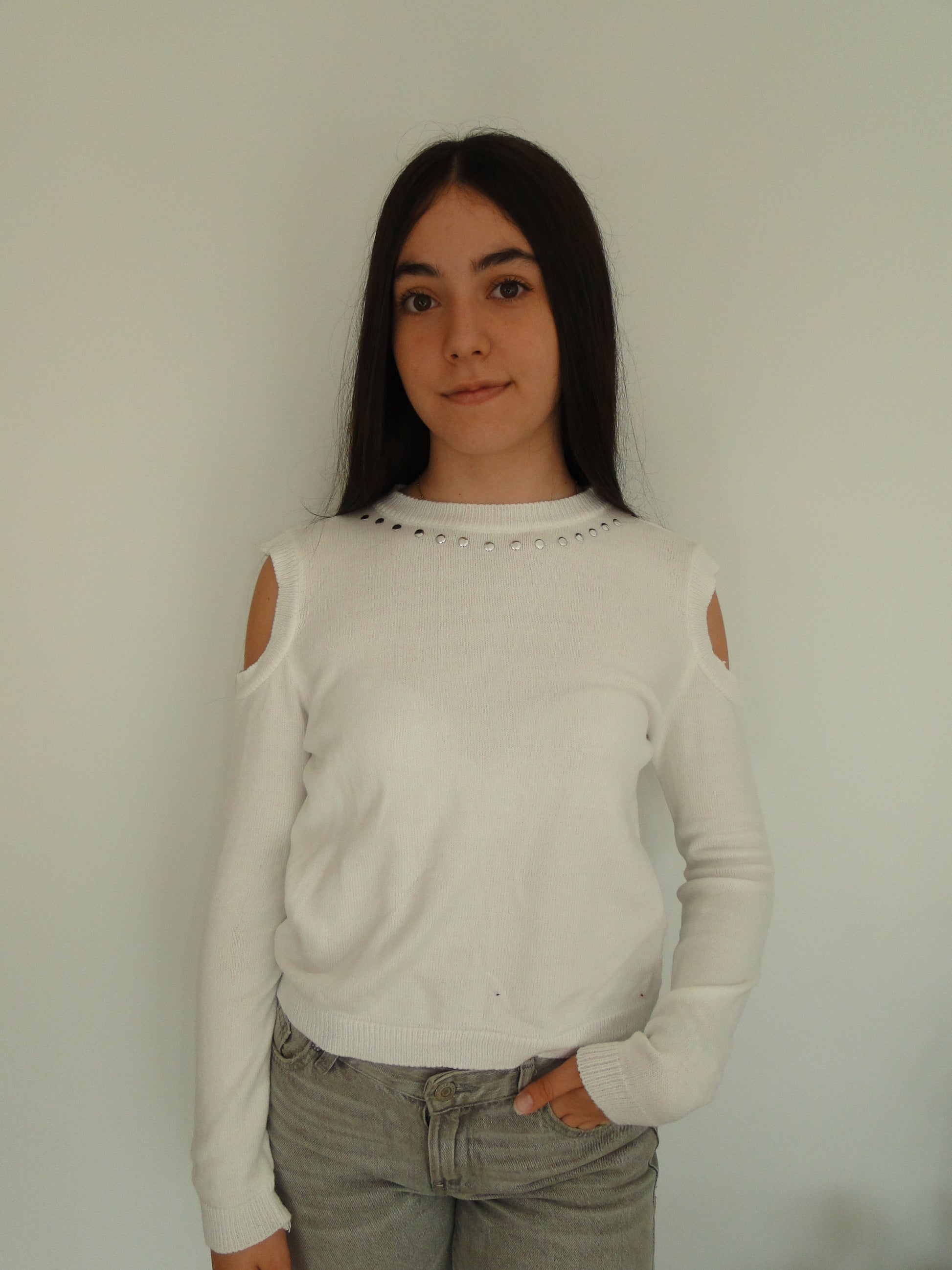 Jersey con hombros descubiertos y tachuelas en la parte del cuello.
